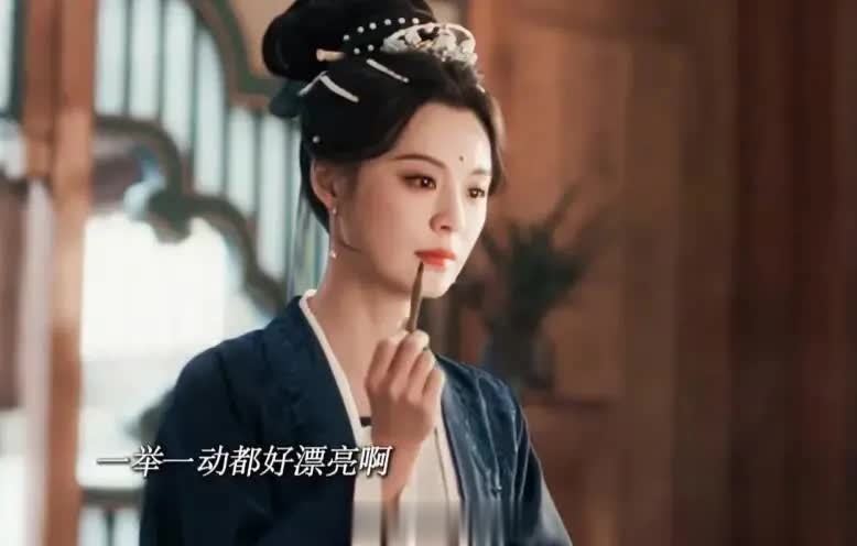 她对镜画眉时,眉眼端庄秀丽,气质冷艳矜贵,举手投足间都是世家女子的优雅!