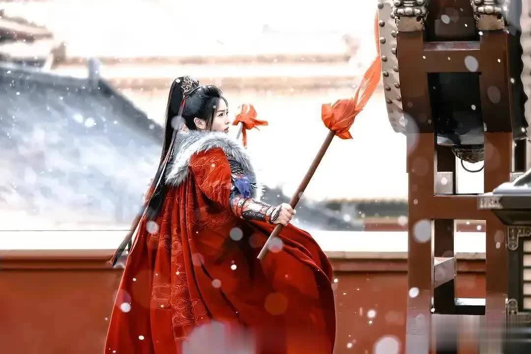 后期,她为寻夫婿披上战甲,红衣束发,手握兵器驰骋沙场,眼神瞬间变得锐利果敢,飒爽英气扑面而来。