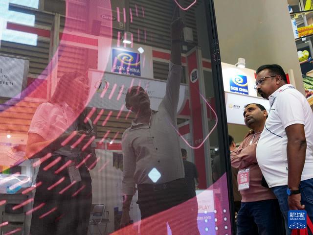 9月17日,参观者在了解LED透明屏产品。 新华社记者 刘颖 摄pagebreak