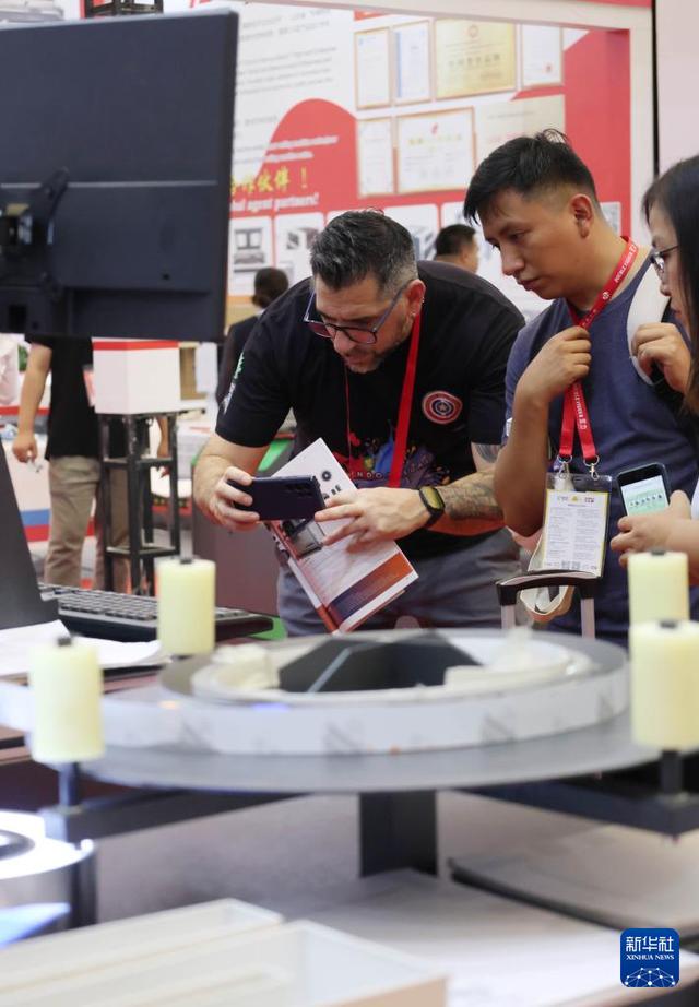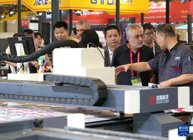 9月17日,参观者在了解制作广告标牌的3D打印设备。 新华社记者 刘颖 摄