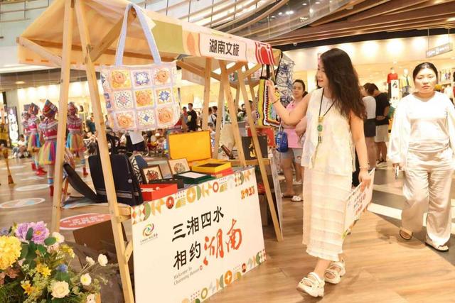 此外,商场外同步开启花车市集,集中展示推介湖南文旅线路、湘瓷、湘戏、湘绣、湘茶、湘菜及“湖南礼物”,让沪上民众沉浸式感受湖南文化的深厚底蕴。现场设置的惊喜互动环节更是人气爆棚,通过送出非遗大礼包、湖南礼物、湖南全域旅游一卡通等福利,诚挚邀请游客一年内可免费畅游湖南众多知名景区,进一步拉近与上海市民游客的距离。
