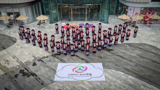 在旅游节大巡游中,来自湖南宁远县的湖南省湘瑶艺术团成为焦点。50名瑶族姑娘手持瑶族绣帕、头戴湘南顶板瑶头饰,带来舞蹈《湘瑶秀出新时代》。她们踏着湘地韵律的欢快节奏,以“挑、捻、绕”等充满湖湘生活气息的舞姿,全方位展现瑶家服饰之美,既刻画了瑶家姑娘的心灵手巧,更传递出新时代湖南瑶族人民的幸福生活图景,赢得现场观众阵阵掌声。